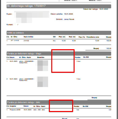 Z omejitvijo se vam v PDF izpisu ne bo izpisal plan porabe, ki je določen na Delovnem nalogu.