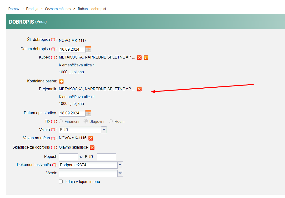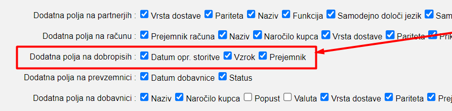 Dobropisom sedaj lahko vklopite možnost prikaza prejemnika na dobropisu.