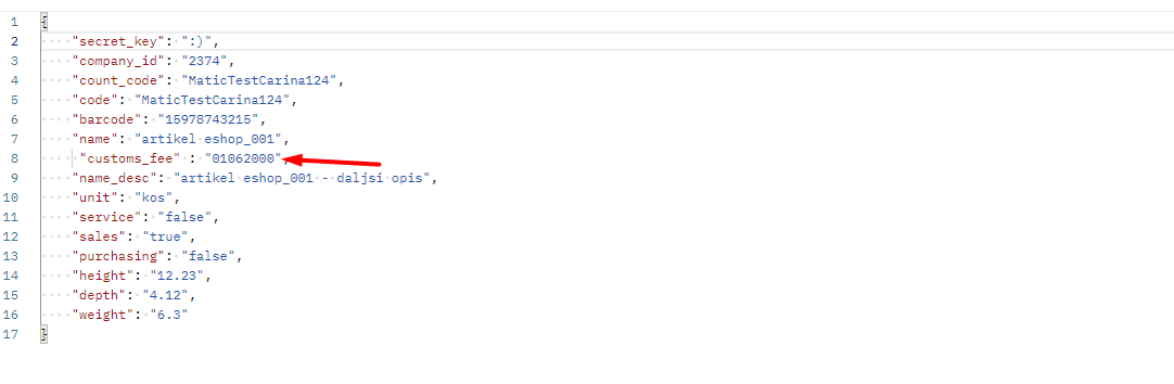 Dodajanje artiklov, ki vsebujejo šifrant, preko API klicev,