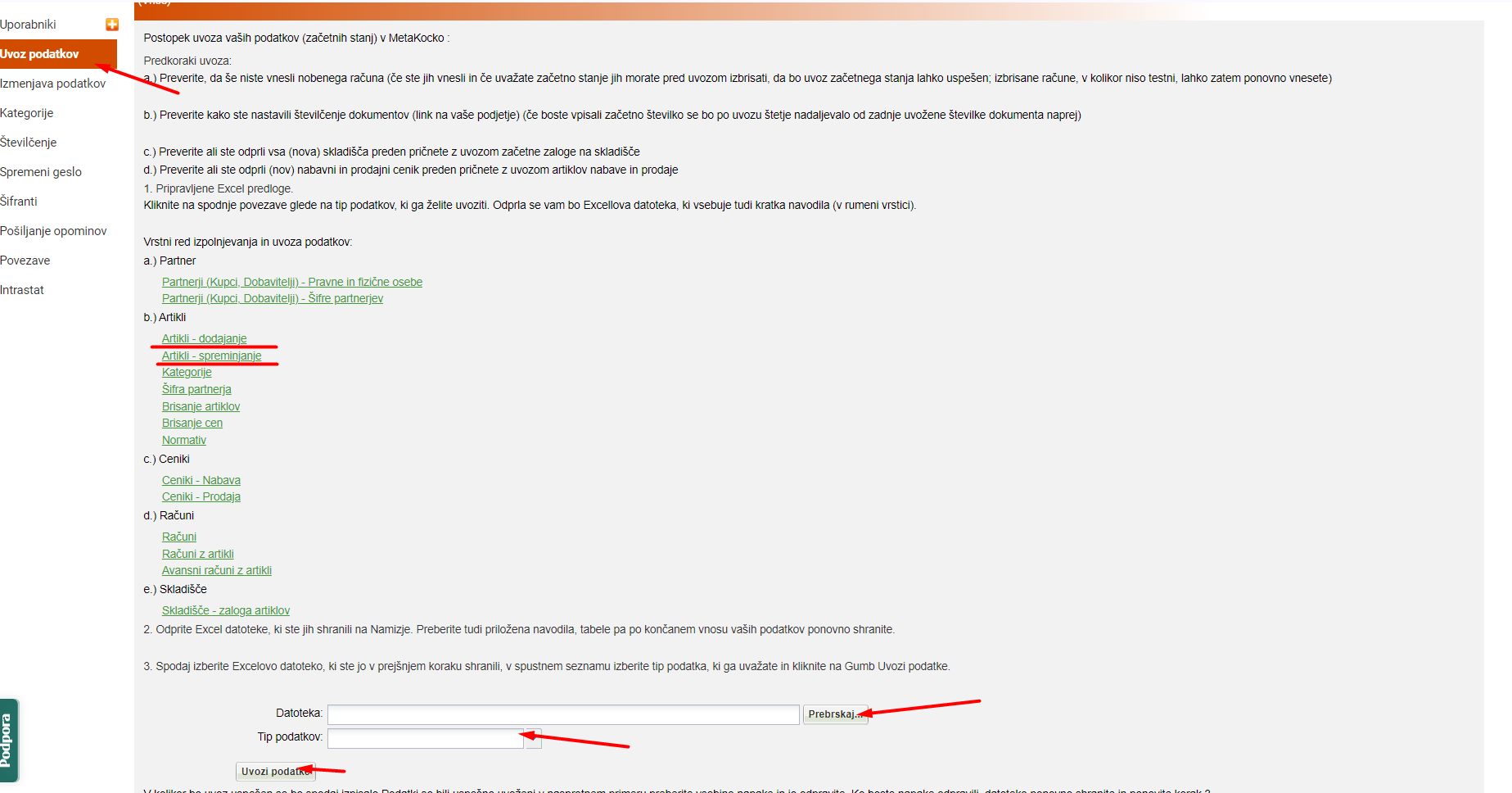 Preko Uvoza podatkov (preko excel tabele, tako dodajanje kot spreminjanje artiklov)