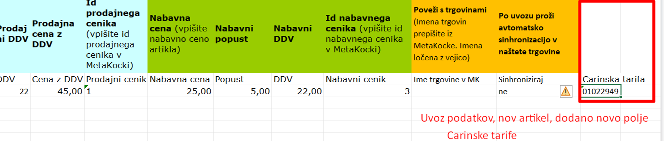 Ustvarili smo nove načine za kreiranje šifrantov carinskih tarif preko artiklov. Z mislimi po hitrejšem delovanju, smo olajšali uporabo Metakocke, saj ni več potrebno dodajati vsak šifranta posebej. Sedaj šifrant kreiramo da ga dodamo h artiklu. Seznam smo že uvozili. Postopek je možno izvesti na 3 različne načine:
