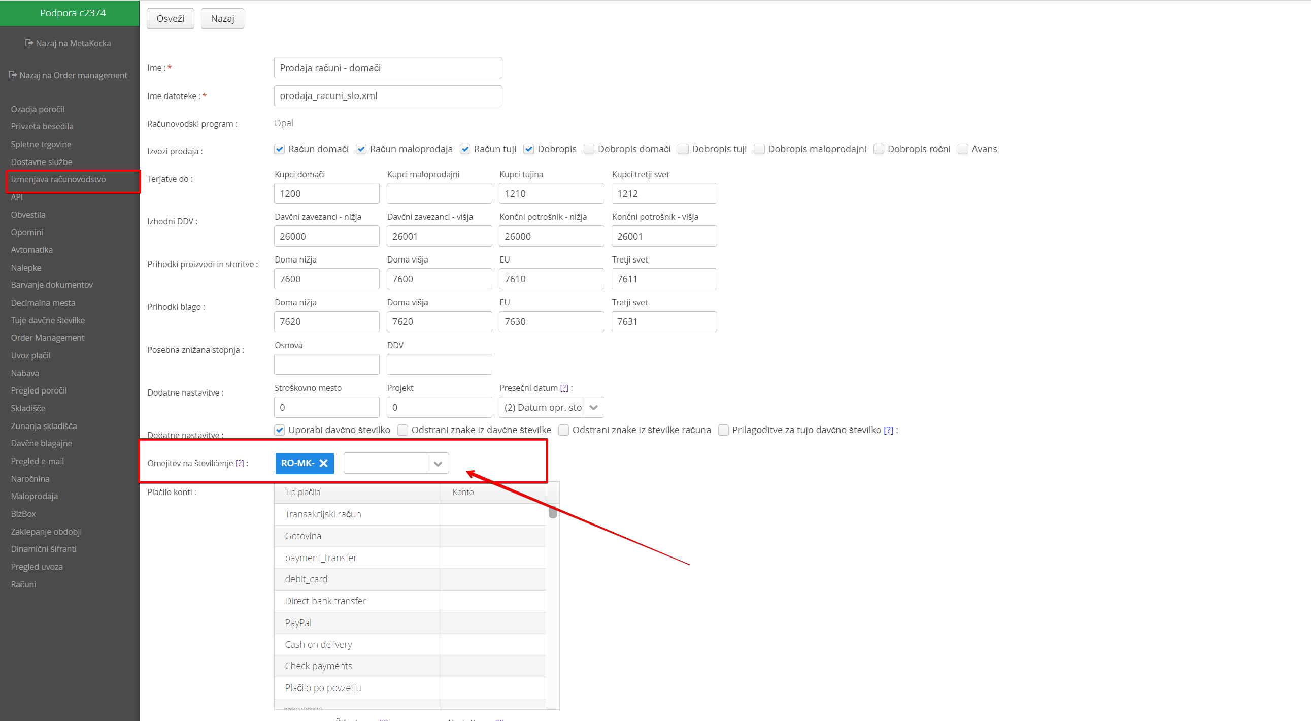 - imamo več ločenih številčenj za domače račune in želimo izvoziti vse hkrati