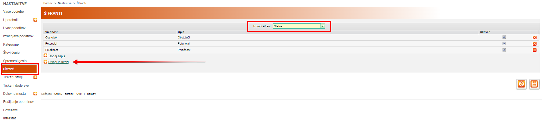 Funkcionalnost je potrebno vklopiti v Nastavitvah / Vaše podjetje