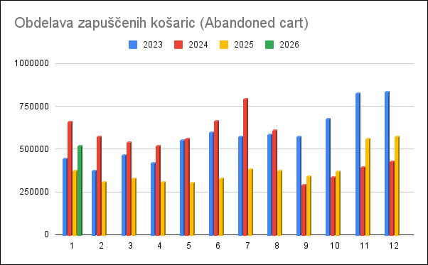 4.) Obdelava zapuščenih košaric (Abandoned cart) – prebranih zapuščenih košaric in pozivanje uporabnika za zaključek nakupa preko email in SMS.