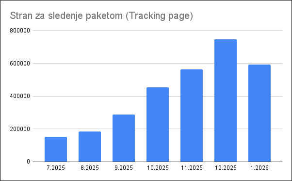 5.) Sledenje pošiljkam (Tracking page) – število obiskov strani za sledenje pošiljki
