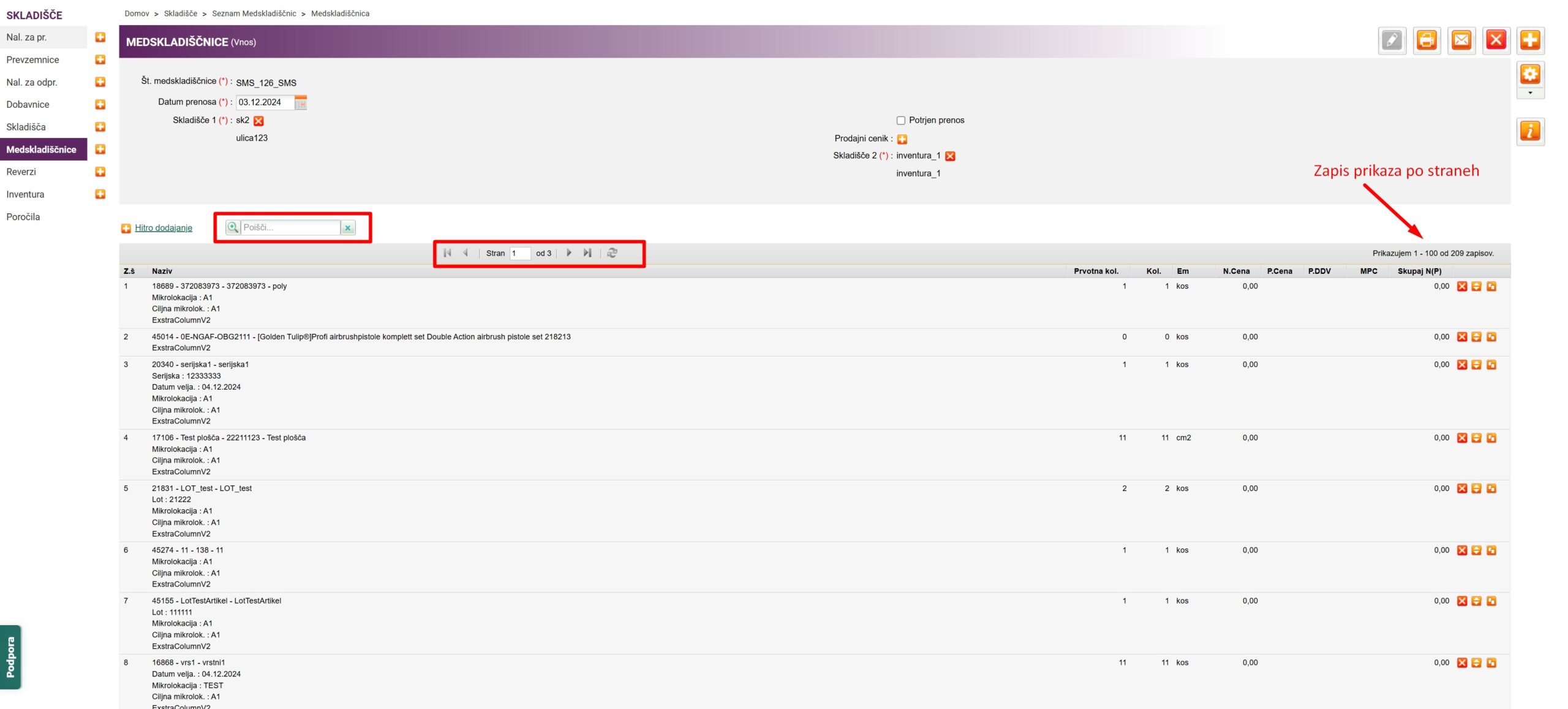 Prevzemnici in medskladiščnici smo uredili nadgradnjo, ki pri uvozu več kot 100 artiklov omogoča paginacijo za lažji pregled v dokumentu.