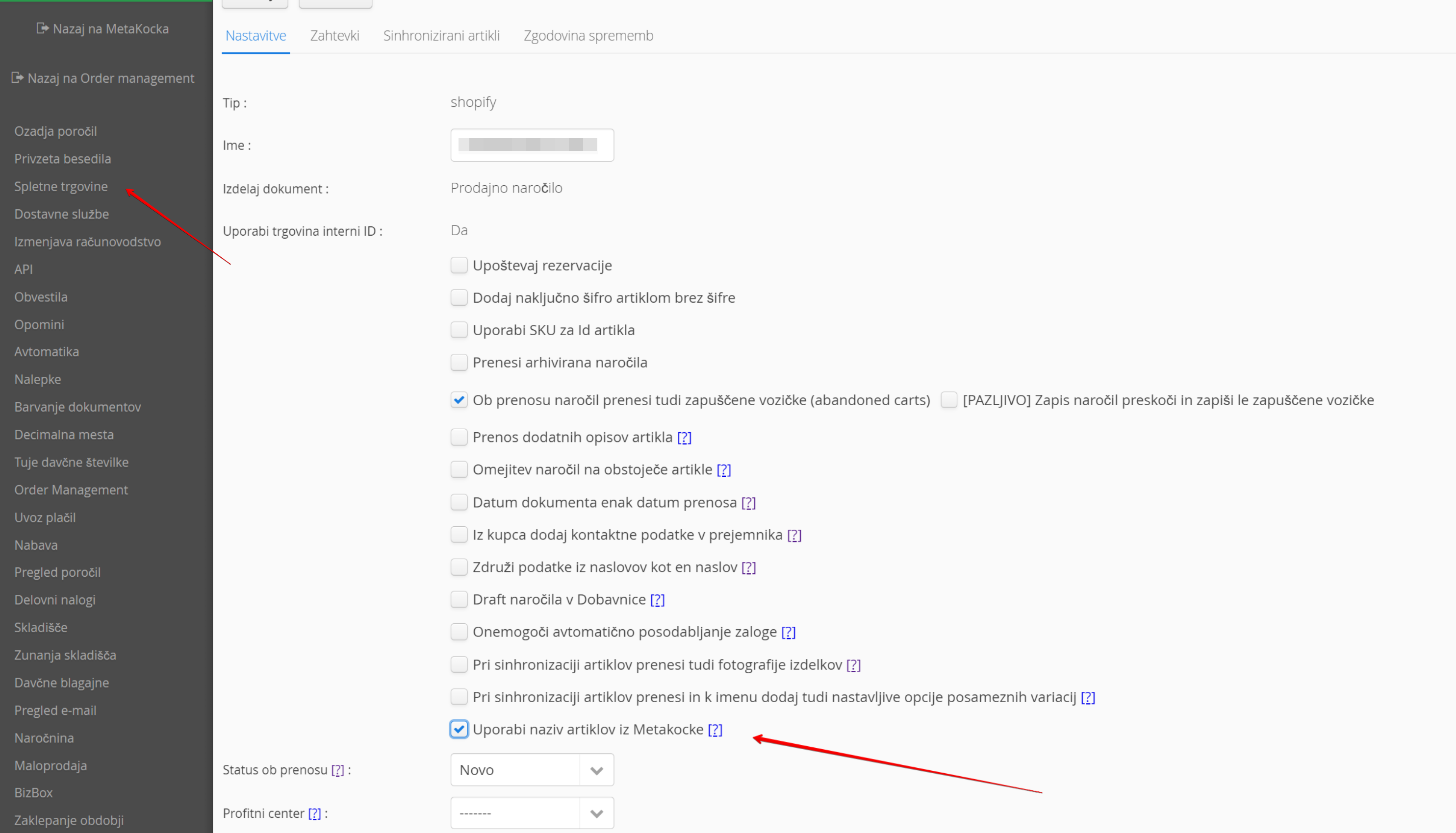 V dodatne nastavitve spletne trgovine smo dodali novo funkcionalnost: Uporabi naziv artikla iz Metakocke.