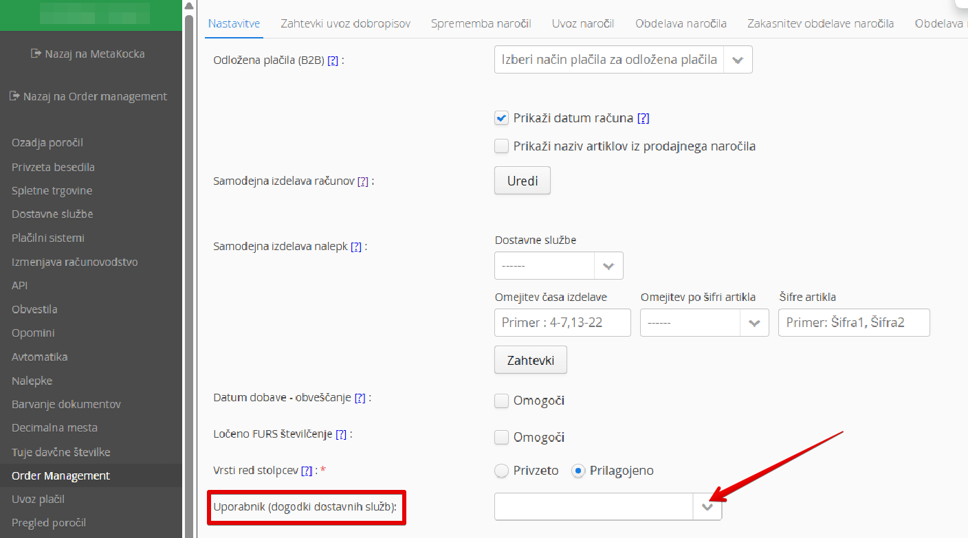 Ko dostavna služba pošlje dogodek na naročilo, se vedno prikaže, da je spremembo uredil uporabnik, ki je vzpostavil integracijo z dostavno službo. Zdaj pa imate možnost izbrati, katerega uporabnika naj sistem zabeleži, ko pride do spremembe statusa naročila v povezavi z dogodkom dostavne službe. Tako boste imeli boljši pregled nad tem, katere spremembe je izvedel uporabnik in katere je opravila dostavna služba.